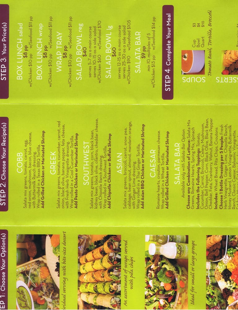 Salata mix, tomatoes, jicama, black beans, corn, cilantro, feta cheese, fresh jalapeos, and Jalapeo Avocado dressing