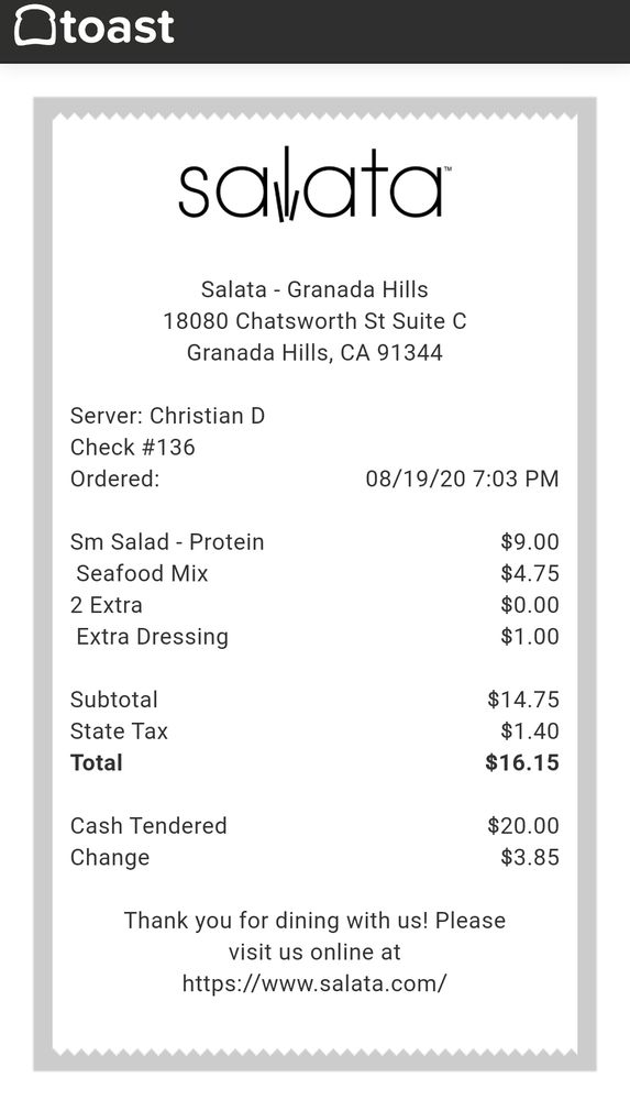 Salata, a popular salad restaurant in Granada Hills, offers a wide variety of options for both vegans and meat-lovers. Using fresh ingredients, customers can customize their salads with over 50 toppings, dressings, and proteins. The menu includes soups, sides, and decadent desserts like chocolate chunk cookies. Customers rave about the friendly service, clean environment, and generous portions. Salata's commitment to quality and customer satisfaction shines through in every dish. With options for delivery, takeout, and catering, Salata is the perfect spot for a healthy and delicious meal. Don't miss out on this salad paradise in the San Fernando Valley.